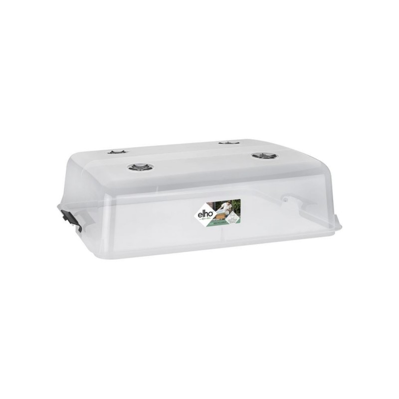 Combinez cette serre de culture avec la table de culture elho green basics grow table super xxl et commencez à cultiver vos propres herbes aromatiques et légumes. Petites boutures. plants de tomates. salades ou herbes aromatiques... Le couvercle assure le meilleur climat pour qu'ils poussent au mieux. grâce à la régulation d'air sur le haut. vous permettant d'ajuster la température et l'alimentation en air afin que vos plantes et herbes aromatiques commencent à pousser en un rien de temps. Attachez simplement les poignées à la table de culture en un seul clic. Cela empêchera la serre de s'envoler et les parasites d'attaquer les graines. les boutures et les plants. Le filtre UV protège vos plants lorsque la table se trouve en plein soleil. Il vous suffit simplement d'arroser de temps en temps et de profiter de votre propre récolte ! Tous les produits de la collection green basics de elho sont fabriqués en plastique recyclé. Leur poids léger facilite leur déplacement. La serre se culture xxl green basics de elho grow xxl est facile à nettoyer et s'adapte à des températures pouvant atteindre -40 ° Celsius. De plus. même si elle reçoit accidentellement des coups. ce n'est pas un problème car tous les produits de la collection elho green basics sont incassables.