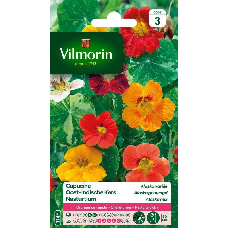 Très facile à réussir, la capucine est idéale pour fleurir vos massifs bas, bordures et jardinières. Cette variété annuelle, à croissance rapide, produit de très belles fleurs simples de coloris mélangés. Son magnifique feuillage, qui limite l'apparition des mauvaises herbes, est panaché de vert et de blanc. Elles apprécient les sols frais mais bien drainés et s'adaptent aux sols peu fertiles.