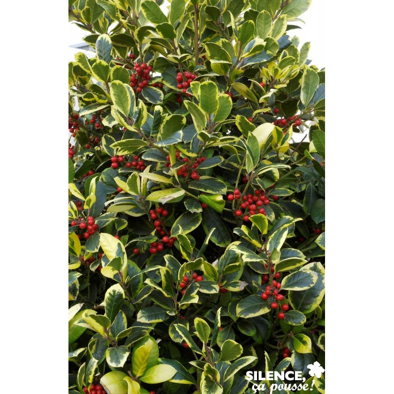 Feuilles panachées de jaune vif, fruits rouges