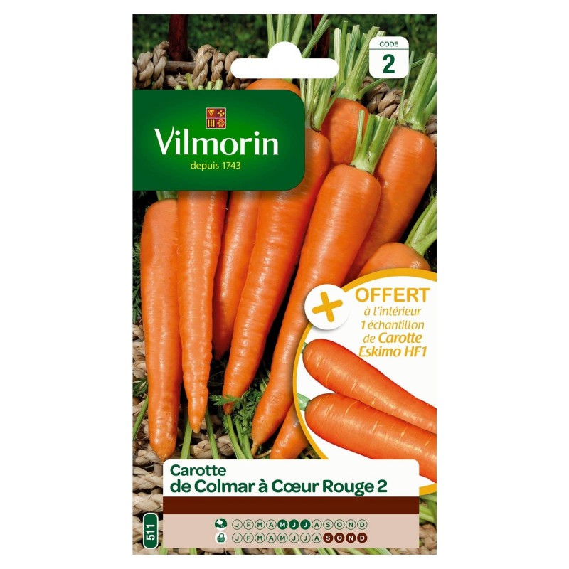 VILMORIN AVEC ÉCHANTILLON-CAROTTE De Colmar À Coeur Rouge 2+Eskimo Hf1 SACHET 511 Code 2
