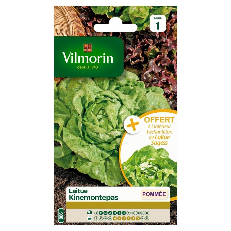 VILMORIN AVEC ÉCHANTILLON-LAITUE POMMÉE Kinemontepas+Sagess SACHET 866 Code 1