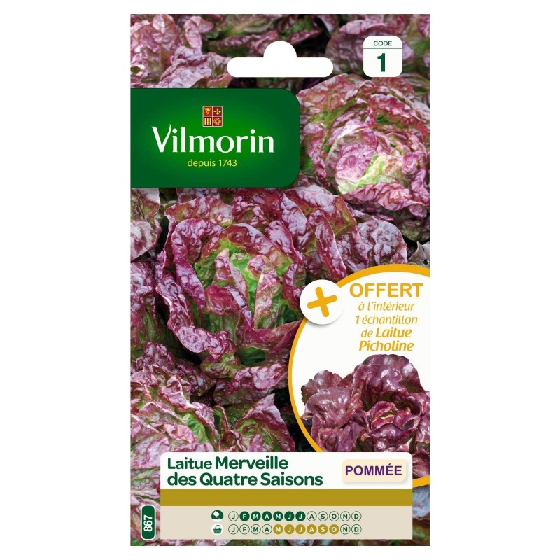 VILMORIN AVEC ÉCHANTILLON-LAITUE POMMÉE Merveille Des Quatre Saisons+Picholine SACHET 867 Code 1