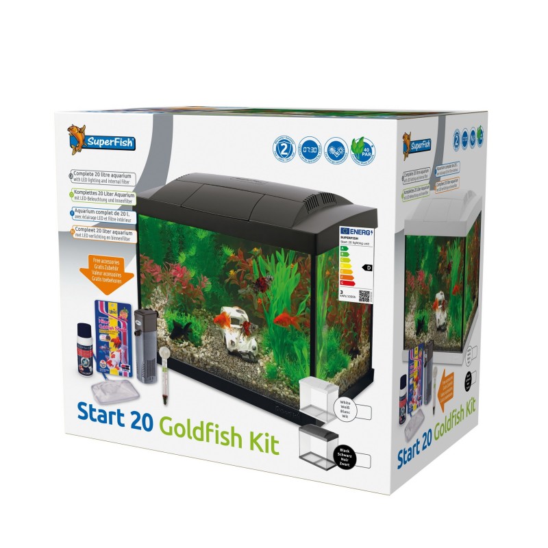 Les aquariums SuperFish Start sont des kits de démarrage complets et abordables avec un éclairage LED économe en énergie, un filtre intérieur et des accessoires pratiques pour dé-marrer le loisir de l'aquarium. Disponible en 6 tailles de 20 à 146 litres, comme aquarium de poissons rouges ou aquarium tropical. Les kits tropicaux sont fournis avec un chauffage d'aquarium!