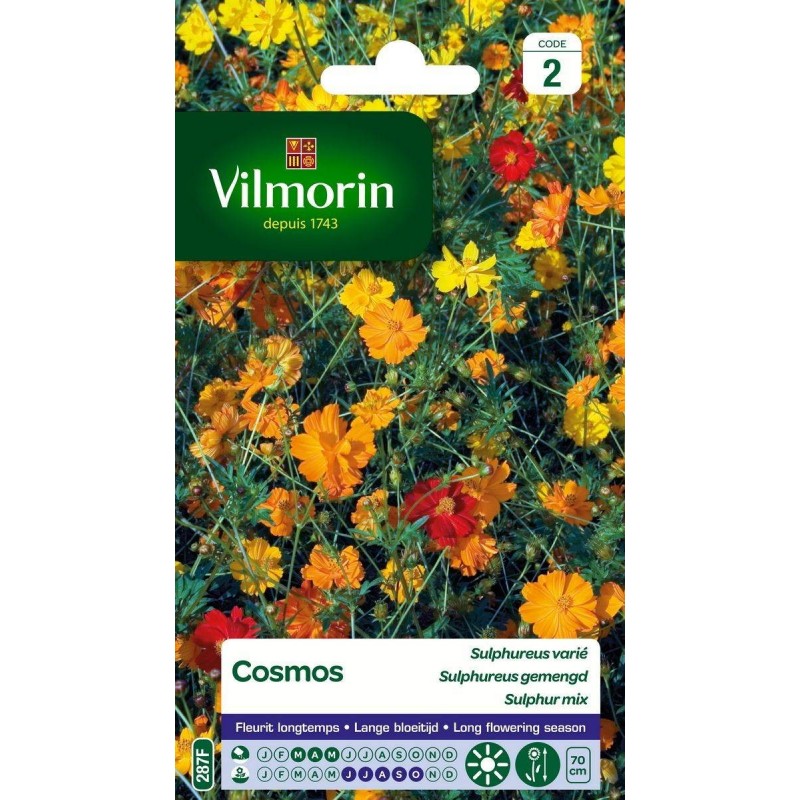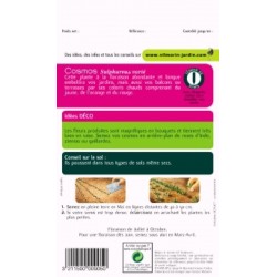 les grands cosmos sont de remarquables plantes de massifs et bordures poussant dans tous types de sols même secs. Les fleurs produites sont magnifiques en bouquets et tiennent très bien. Variété produisant de grandes fleurs semi doubles originales par leur forme très découpée et leurs couleurs allant du blanc au pourpre.