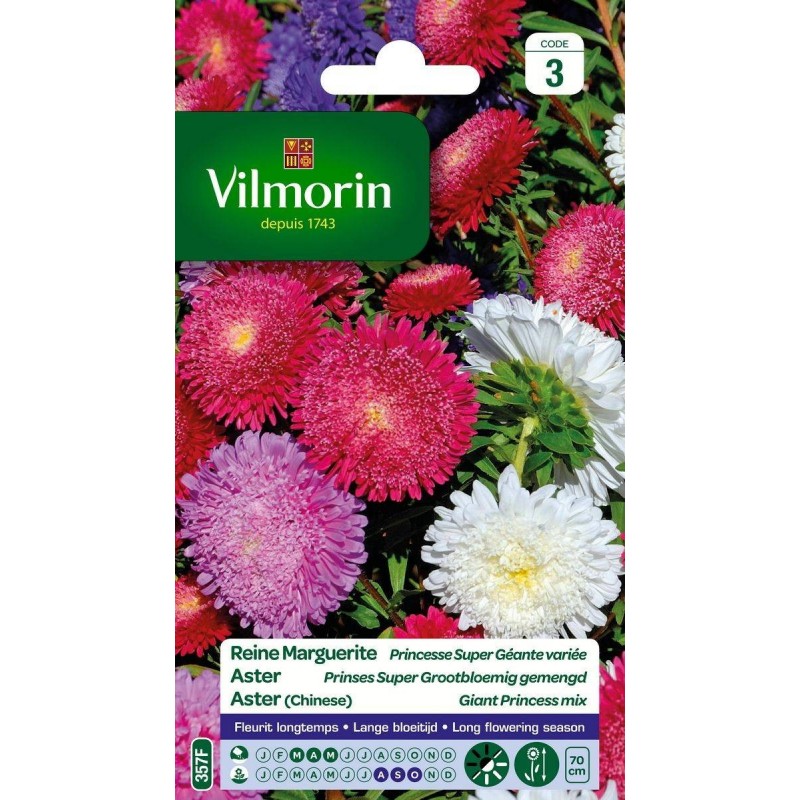 VILMORIN REINE MARGUERITE Princesse Super Géante Variée SACHET 357F Code 3