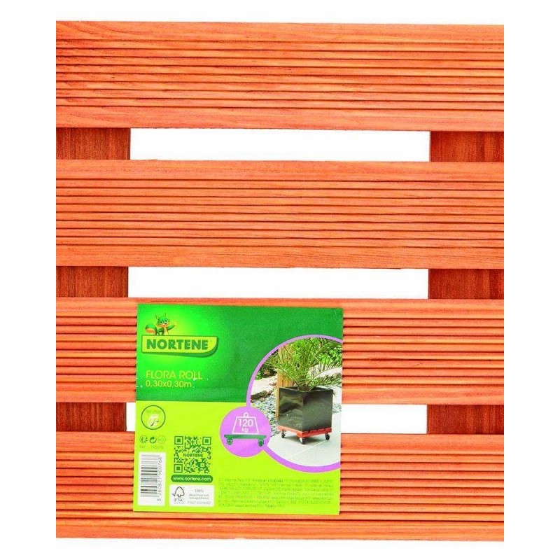 En bois certifie FSC® 4 roulettes vissees. plein bois : 2 avec freins. Usage interieur / exterieur. Resistance 120 kg.