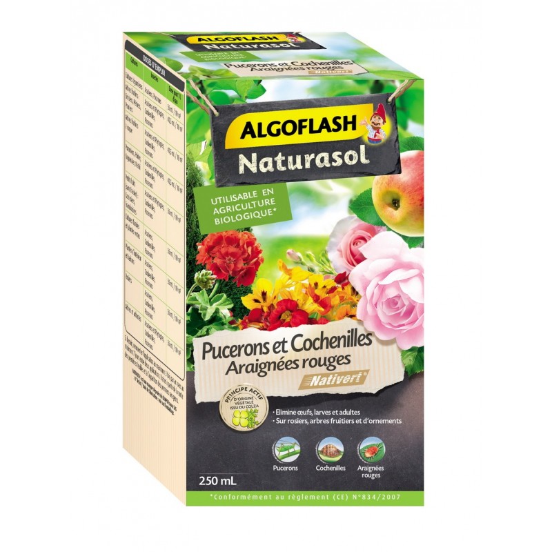 Insecticide concentré à base d?huile de colza. Destruction rapide des pucerons et araignées rouges sur rosiers. fruits. arbres. arbustes. et plantes d'intérieur. L'huile enrobe l'insecte et l'asphyxie. Grâce à son mode d'action mécanique. il est sans phénomènes de résistance. Élimine oeufs. larves et adultes. Utilisable en Agriculture Biologique*. Délai avant récolte 1 jour.