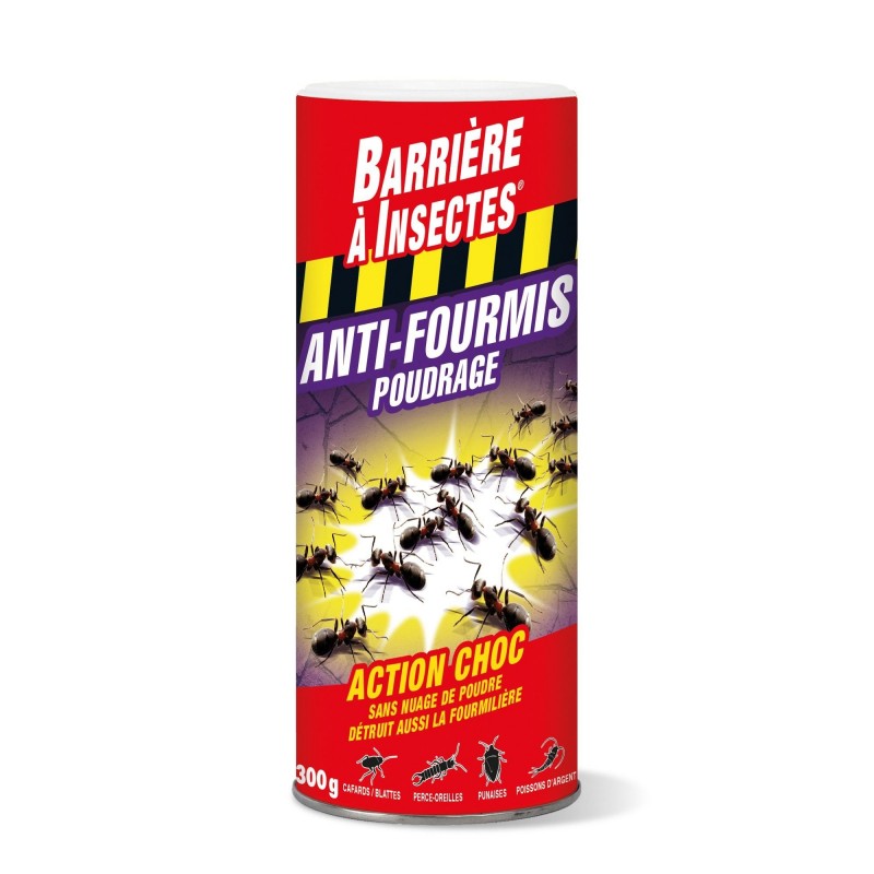 Poudre prête à l?emploi destinée à éliminer les fourmis mais aussi cafards. blattes. perce-oreilles. punaises et poissons d'argent. Poudrage sans nuage de poudre. Destruction de toutes les variétés de fourmis. Action de choc et de longue durée.