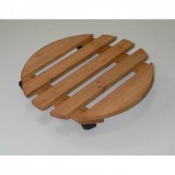 Modèle rond diam 35 cm / modèle carré 35x35 cm. Hauteur : 7 cm. Composé de lattes en pin certifié FSC®. revêtues d'un vernis alkyde transparent. largeur 4 cm x ép 1.25 cm. 4 roulettes multidirectionnelles en plastique coloris noir. Résistance jusqu?à 80 kg.