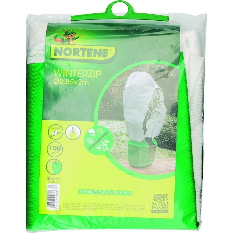 Housse en voile non tissé polypropylène.Voile de 100 g/m² coloris blanc.Traité anti-UV.Avec zip pour une mise en place et un entretien facile.Une cordelette de blocage sur le bas de la housse.Dimensions : 0.55 x 2 m - 0.85 x 2 m en partie haute.