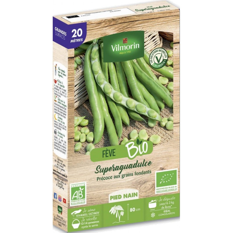 VILMORIN FÈVE BIO Naine Superaguadulce BOÎTE Série 20M