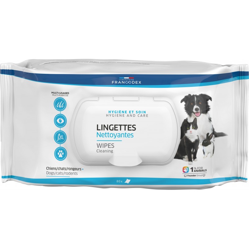 À usage unique, les LINGETTES NETTOYANTES FRANCODEX nettoient le contour des yeux, les oreilles, les pattes ou toute autre zone du pelage. D'une odeur agréable, les lingettes contiennent de l'Aloe vera connu pour ses propriétés hydratantes pour la peau. Les lingettes sont en viscose, fibre d'origine végétale, douce et absorbante.