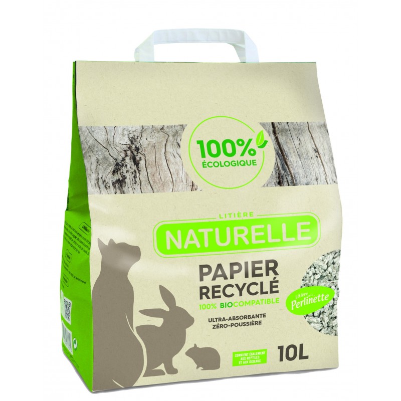 La litière Perlinette en papier recyclé pour chat, lapin, cobaye et oiseau est naturelle.