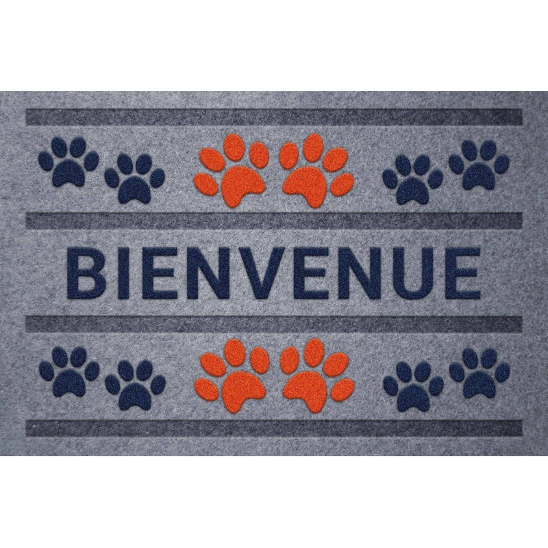 Paillasson Flock'Estampes Bienvenue Pattes Gris Pour Intérieur/Extérieur En Polypropylène 40X60-ID MAT