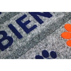 Souhaitez la bienvenue à vos amis et à leurs animaux de compagnies avec le tapis paillasson FLOCK'ESTAMPES d'ID Mat et ses pattes de chien.