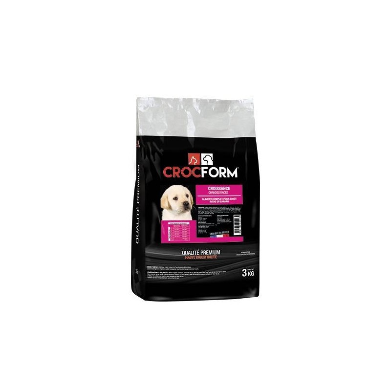 Aliment complet CROCFORM QUALITÉ PREMIUM CROISSANCE chiot grande race riche en canard 3KG
