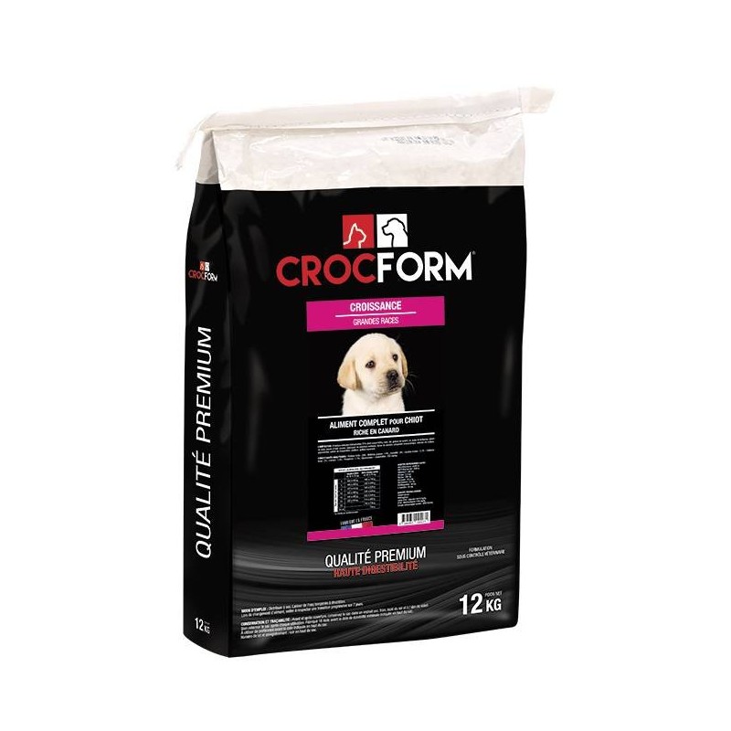 Aliment complet CROCFORM QUALITÉ PREMIUM CROISSANCE chiot grande race riche en canard 12KG