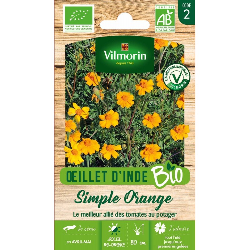 VILMORIN OEILLET D'INDE BIO Simple Orange SACHET Code 2