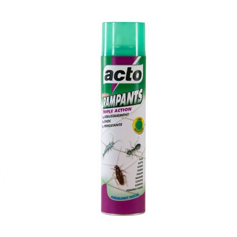 • Triple action : effet débusqueur (les insectes sortent de leur cachette) + effet choc (les insectes touchés meurent en moins de 10 minutes) + effet persistant plusieurs semaines.