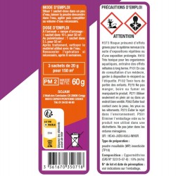 • Dilué dans 10 L d'eau pour l'arrosage ou 5 L d'eau pour une pulvérisation, 1 sachet-dose permet de protéger jusqu'à 50 m2 de surface.