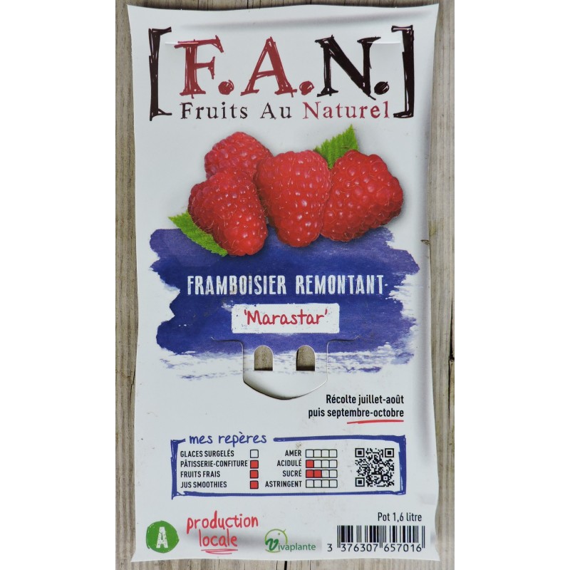 Le Framboisier Marastar est une variété remontante, fournissant de gros fruits très savoureux, de forme conique et de couleur rouge foncé. C'est une variété vigoureuse présentant une bonne tolérance aux maladies. Fructifie sur les pousses de l'année : récolte continue de juillet à octobre, jusqu'à 3 kg par pied sur la saison.