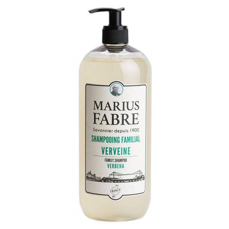 Shampooing familial Marius Fabre parfumé à la verveine.Huiles 100% végétales, sans graisses animales, sans tensioactifs de synthèse, sans sodium laureth sulfate, sans paraben, sans tetrasodium EDTA.