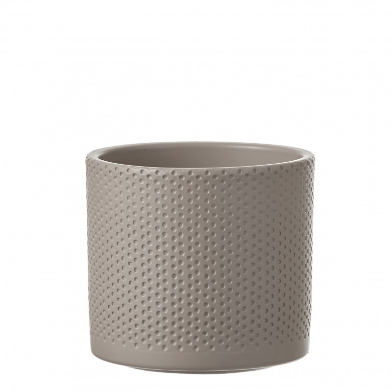 Cache-Pot Era Relief Rond Taupe En Céramique H13-Ø15-MICA DECORATIONS