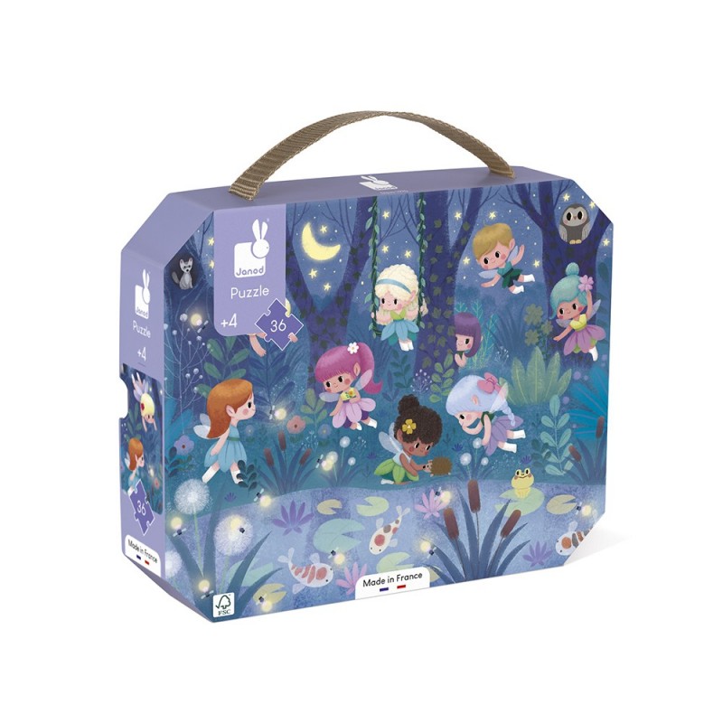 Pour découvrir ce petit monde féérique, tout en développant sa mémoire et dextérité, voici un beau puzzle en carton de 36 pièces. Dans sa jolie valisette, ce puzzle sera facile à transporter grâce à sa poignée en tissu. Contient un poster servant de modèle pour les débutants, les plus aguerris pourront ensuite réaliser le puzzle en toute autonomie. Fabriqué en France, produit FSC et à base d'encres végétales.