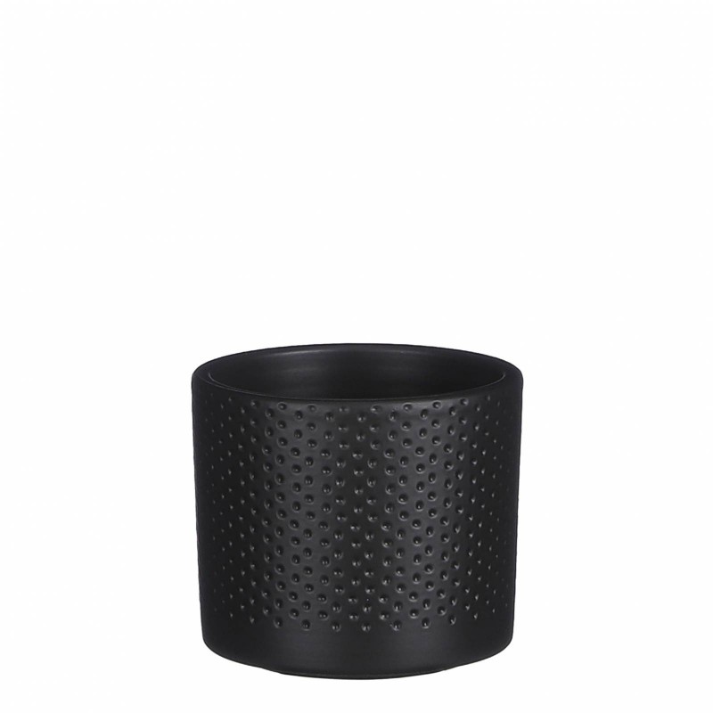 Cache-Pot Era Relief Rond Noir Mat En Céramique H9-Ø10-MICA DECORATIONS