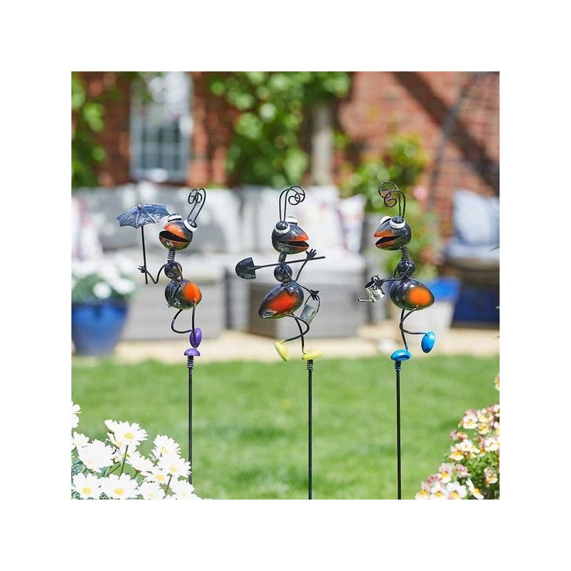 Pique décorative à planter dans un parterre ou un pot de fleurs. Mix de 3 designs de fourmi. Métal - 86 x 13 x 6 cm