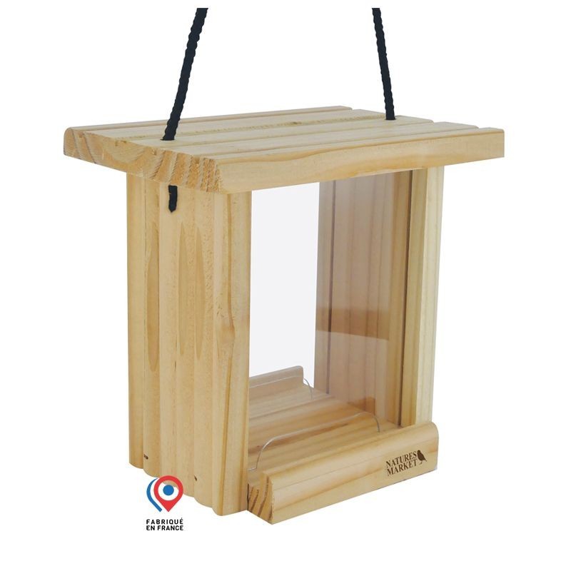 Mangeoire 'BAR À GRAINES', fabriquée en FRANCE en pin douglas et épicéa français, issus de forêts gérées durablement.