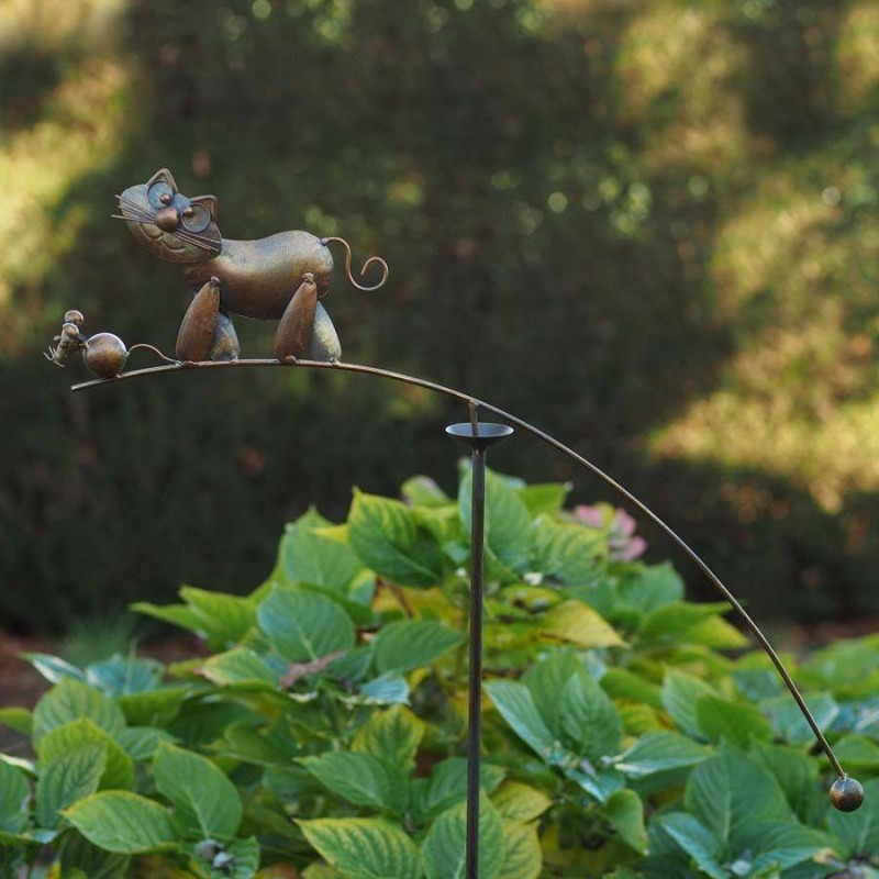 Cet article est un modèle d'équilibre. la partie horizontale superieure repose par sa pointe sur une coupelle juchée au dessus d'une tige. Il apporte un soupcon d gaieté et un élémlent de suprise propre à animer le jardin .