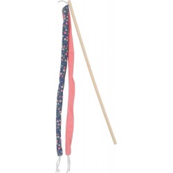Jouet éco-conçus pour chats ETHI'CAT. Canne à pêche en bambou avec ruban en tissu recyclé. Tissu avec motif fleur. Fabriqué à partir de 28% minimim de matières recyclées (dont polyester recyclé). Contient de l'herbe à chat pour plus d'attractivité. Jouet