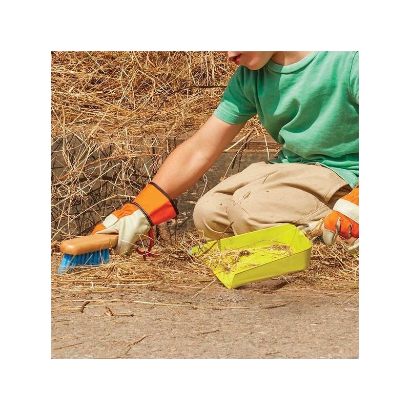 Pelle et balayette pour enfant, à utiliser en intérieur ou extérieur. Métal, manche en bois certifié FSC® C126085, Polyéthylène - 20 x 8 x 25 cm