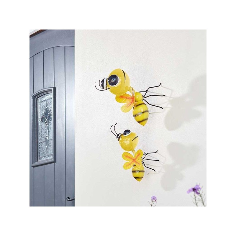Abeille décorative amusante et colorée en métal à poser ou accrocher au mur.