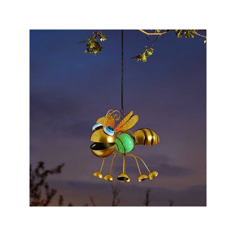 Abeille décorative phosphorescente à suspendre à une branche. Métal, plastique - 18 x 10 x 14 cm