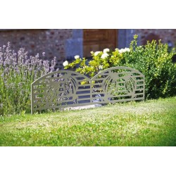 Pour délimiter les contours d'un jardin avec style. pour mettre en valeur un massif fleuri. optez pour cette bordure stylisée en métal époxy. A planter directement en terre. Installation et repositionnement faciles. et résultat immédiat.Fabriqué en métal. feuille ép.0.8mm. hauteur totale 0.40 m (dont piétement hauteur 0.14 m). Longueur : 1 m. épaisseur : 9mm. Poids : 1 kg. Revêtement peinture poudre. Motifs ajourés. réalisés par découpe laserA coordonner avec le panneau et le treillis de la même collection « Puppy ».