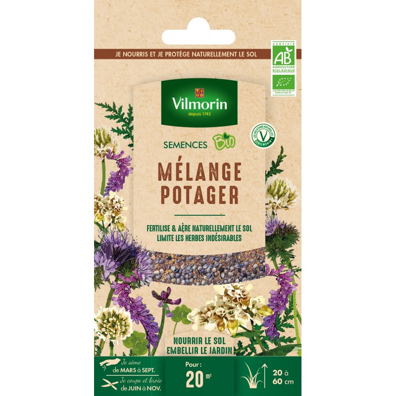 VILMORIN SEMENCES BIO mélange potager Nourrir le sol embellir le jardin 20M2 Sachet pm 60G