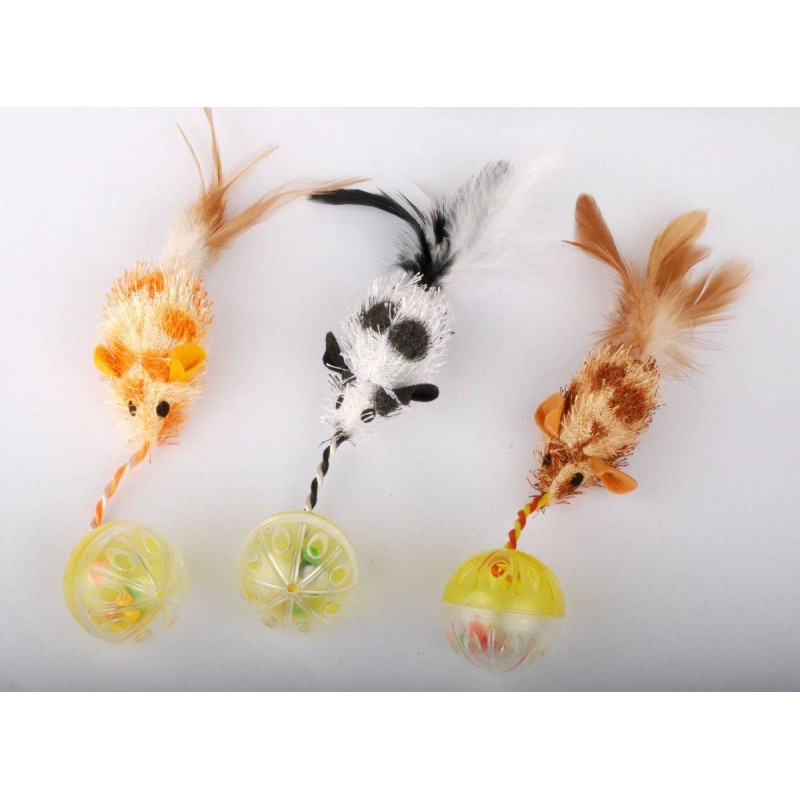 Jouet pour chat souris+balle avec herbe à chat orange/blanc/marron SPOT