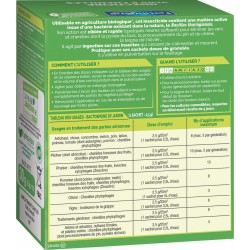 Cet insecticide contient une matière active issue d 'une bactérie existant dans la nature, le Bacillus Thuringiensis. Son action est ciblée et rapide (quelques heures suffisent) pour éliminer les vers et chenilles dont la pyrale du buis, la processionnaires du pin et du chêne, la teigne de l'olivier... Il agit par ingestion sur ces insectes qui cessent de s'alimenter et meurent. Pratique avec ses sachets doses de granulés, il s 'utilise en pulvérisation sur le feuillage.
