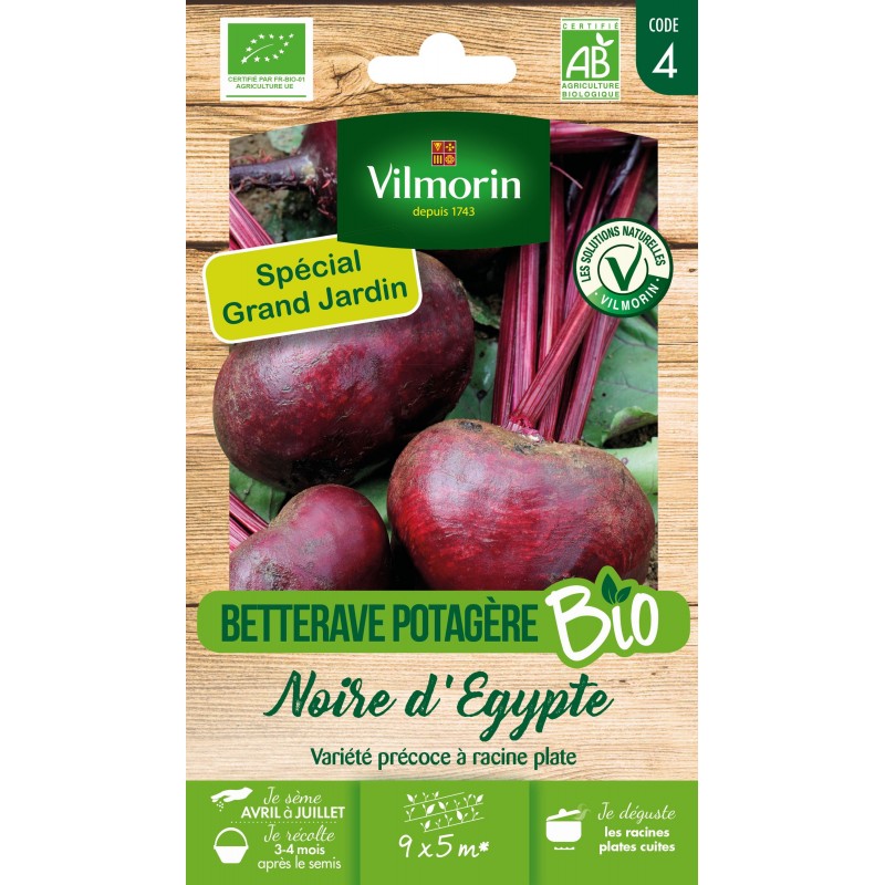 VILMORIN SPÉCIAL GRAND JARDIN-BETTERAVE BIO Potagère Noire D'Égypte SACHET GM Code 4