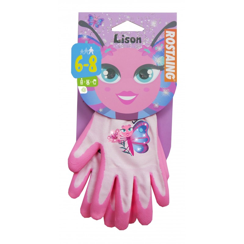 Dotez vos enfants de gants pour faire comme les grands ! Avec Lison le papillon, optez pour des gants au coloris rose pour leurs activités extérieures et leurs petits travaux de jardinage. D'un confort et d'une excellente dextérité, il sera facile pour votre enfant de jardiner avec aisance et sans perdre ses gants grâce à sa lanière comme au ski ! Enfin, grâce au gant Lison, vous ferez un acte engagé en choisissant produit issu de matériaux recyclés.