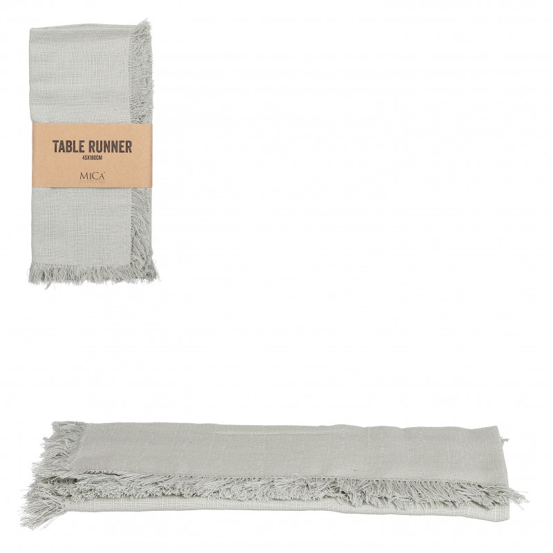 Chemin De Table Villia Vert Clair En Coton 180X45-MICA DECORATIONS