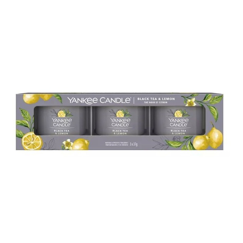 Votive Verre X3 SIGNATURE Thé Noir/Citron-YANKEE CANDLE