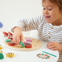 Compose le jardin de tes rêves en plaçant les insectes et les végétaux sur un support en bois ! Ce jeu éducatif permettra à votre enfant de réaliser ses propres mandalas à l’aide de 25 pièces en bois sur le thème du jardin. Idéal pour développer la concentration et le sens de l’observation à travers un moment calme et ludique ! Le jeu se compose d’un plateau, 5 abeilles, 5 fleurs roses, 5 marguerites, 5 feuilles, 5 coccinelles en bois et 12 modèles à reproduire. L’objectif est de disposer les différents accessoires de façon symétrique en suivant un modèle ou de laisser libre court à son imagination. Plusieurs modes de jeu sont disponibles sous forme d’ateliers. Dans le cadre de l’atelier autonome, votre enfant devra reproduire seul les modèles des cartes à l’aide des accessoires. Lors de l’atelier duo, vous pourrez accompagner votre enfant dans son apprentissage en décrivant où les éléments doivent être placés sur le plateau. Jouet en bois et en carton FSCTM. Jouet éducatif développé en collaboration avec une professeure des écoles pour les enfants à partir de 2 ans.