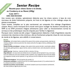 Cette recette spéciale pour les chiens âgés est complète sur le plan nutritionnel, ne contient pas de cereales et est composée d'un mélange d'ingrédients uniques. Nous ajoutons la moule verte (associée aux soins des articulations), l'EPA et le DHA provenant d'algues (réputées pour aider au fonctionnement normal du cerveau) et les prébiotiques naturels (réputés pour favoriser la digestion). Nous préparons cette recette avec de la viande fraîche et saine, des fruits et des légumes sains, ainsi que notre mélange emblématique d'herbes botaniques, afin de produire un aliment délicieux et digestible pour les chiens.