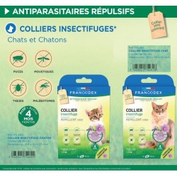 Sans PVC, sans phtalates et formulé à base d'extraits de margosa, de géraniol et de lavandin aux propriétés répulsives, le COLLIER INSECTIFUGE FRANCODEX protège votre chat pendant 4 mois de toute infestation par des parasites. Collier de 35cm.