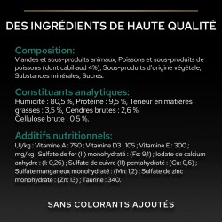 COMPOSITION: Viandes et sous-produits animaux, Poissons et sous-produits de poissons (dont cabillaud 4%), Sous-produits d'origine végétale, Substances minérales, Sucres.