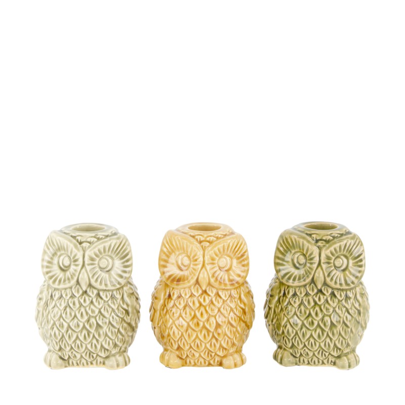 Bougeoire Hiboux Vert En Céramique H10-Vendu À L'Unité-DIJK