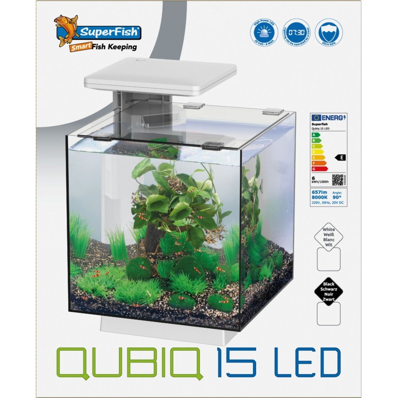 SUPERFISH QUBIQ 15 LED AQUARIUM Avec éclairage&filtre d'angle Blanc